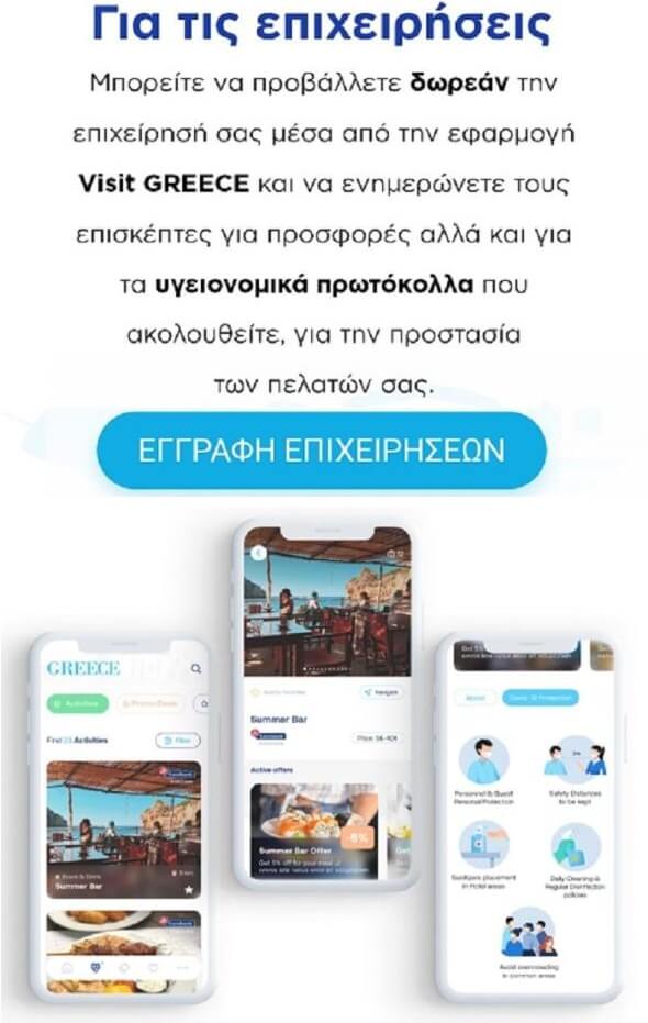 Προκειμένου να επωφεληθούν από την εξαιρετική ευκαιρία προβολής στην εφαρμογή, οι επιχειρήσεις καλούνται να εγγραφούν στο www.visitgreeceapp.com επιλέγοντας το πεδίο «Εγγραφή επιχειρήσεων».