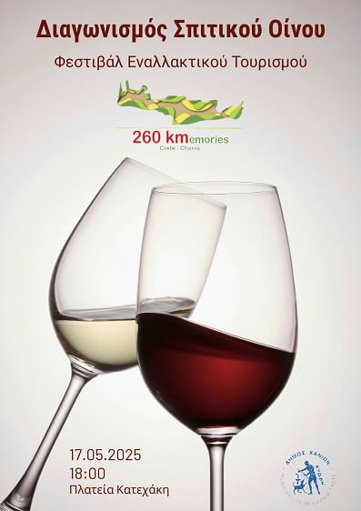 Στο πλαίσιο του Φεστιβάλ, το Σάββατο 17 Μαΐου 2025, στις 18:00, θα πραγματοποιηθεί ο 1ος Διαγωνισμός Σπιτικού Οίνου, δίνοντας την ευκαιρία σε ερασιτέχνες παραγωγούς να αναδείξουν το δικό τους κρασί και να το παρουσιάσουν σε κοινό και ειδικούς.