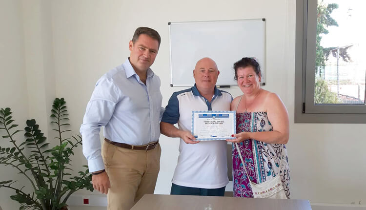 Ζευγάρι Βρετανών τουριστών που επισκέπτονται ανελλιπώς το Δήμο Χερσονήσου Ηρακλείου για τις καλοκαιρινές τους διακοπές, βράβευσε χθες ο δήμαρχος Γιάννης Σέγκος στο γραφείο του στις Γούρνες.
