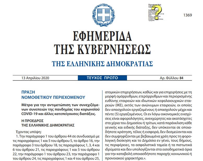 Διαβάστε ΕΔΩ ολόκληρη την Πράξη Νομοθετικού Περιεχομένου.