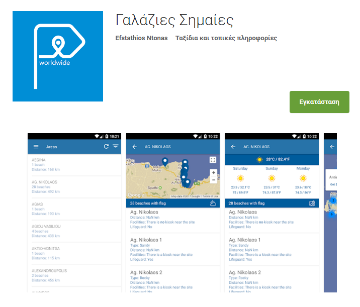 Ο Ευστάθιος Ντονάς δημιούργησε την πολύ χρήσιμη δωρεάν εφαρμογή για τα κινητά/tablets Android & iPhone “Beach Flags”, για τις «Γαλάζιες Σημαίες» της χώρας μας, αλλά και όλης της υφηλίου.