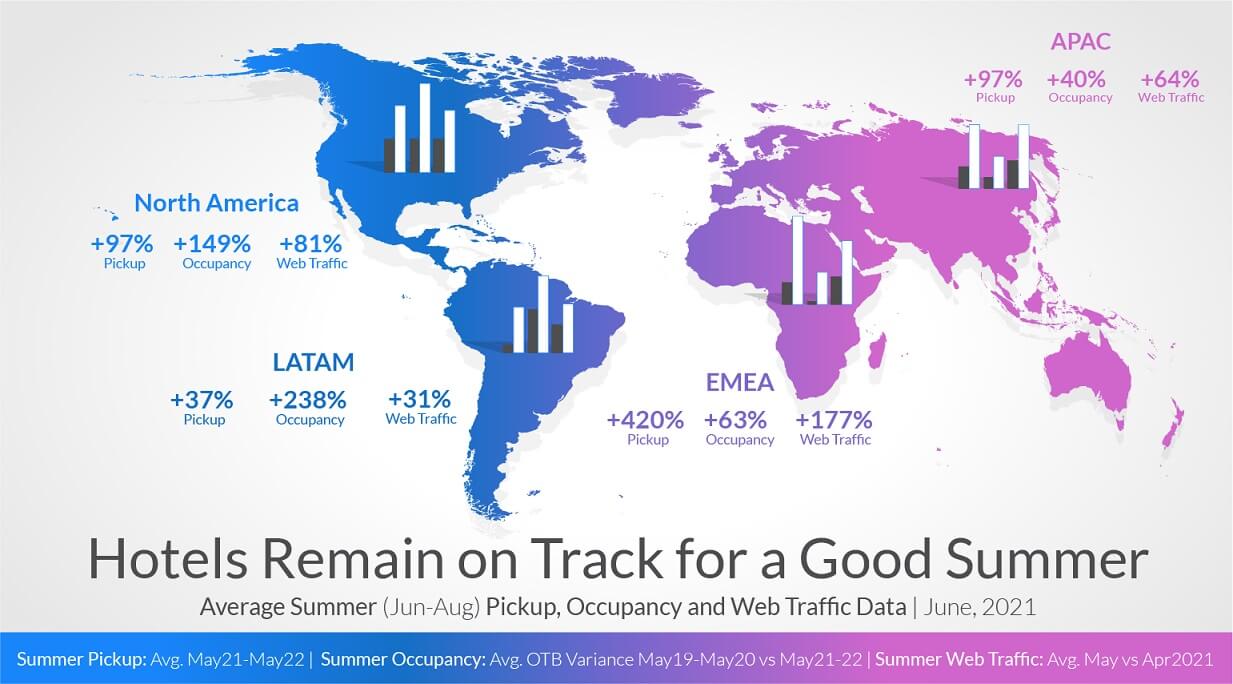 Η τελευταία έκδοση του Duetto Pulse Report, η οποία παρακολουθεί τα δεδομένα απόδοσης (performance data) των ξενοδοχείων, για το Μάιο του 2021 δείχνει ότι η ανάκαμψη της ευρωπαϊκής ξενοδοχειακής βιομηχανίας συνεχίζεται και για αυτό το μήνα, καθώς έχουν αναφερθεί ορισμένα εντυπωσιακά δεδομένα σχετικά με το pick up αλλά και των αναζητήσεων.