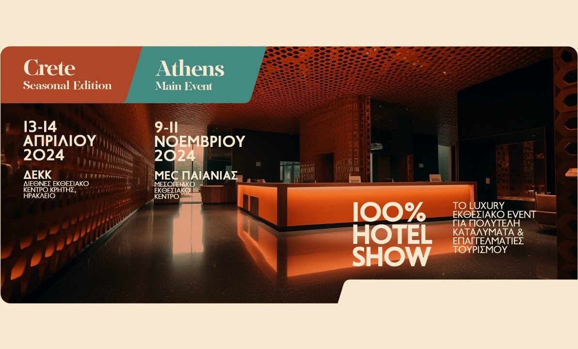 Από το 100% Hotel Show ανακοινώθηκε ότι για πρώτη χρονιά θα πραγματοποιηθούν δύο διαφορετικές διοργανώσεις για το 2024, εξελίσσοντας το εκθεσιακό του μοντέλο σε διεθνή πρότυπα.
