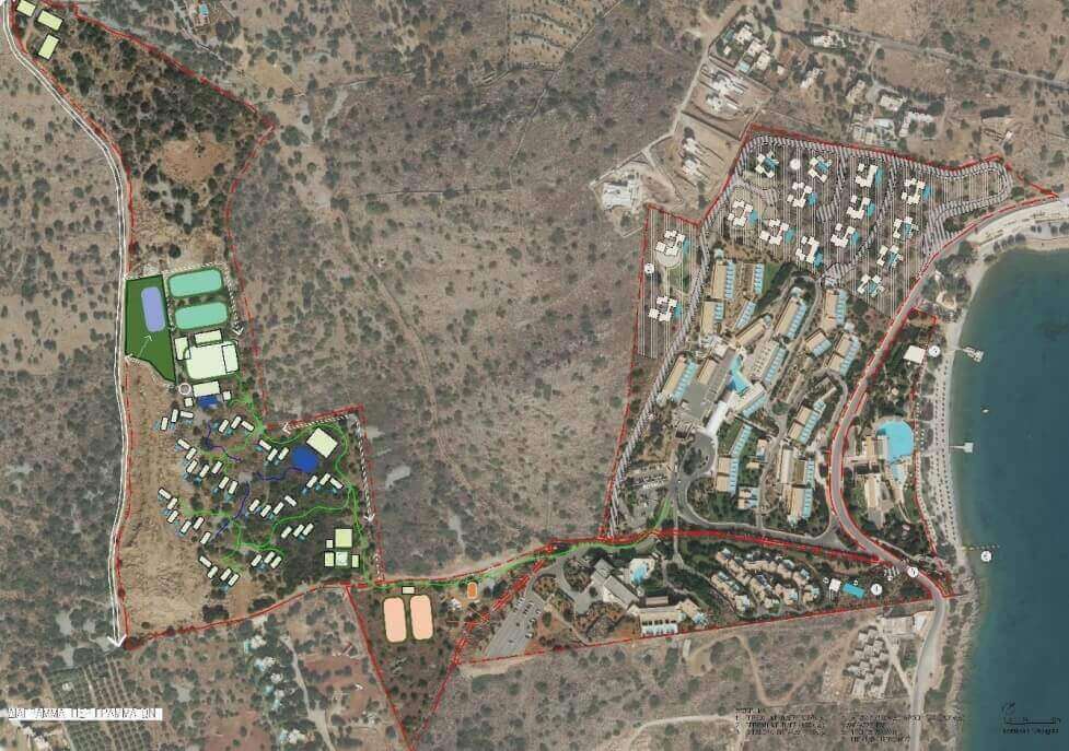 • Η ανέγερση κτηρίων, υποδοχής και υποστήριξης των τουριστικών καταλυμάτων με μικρό χώρο εκδηλώσεων, περίπου 300 τ.μ. και 250 τ.μ. αντίστοιχα.