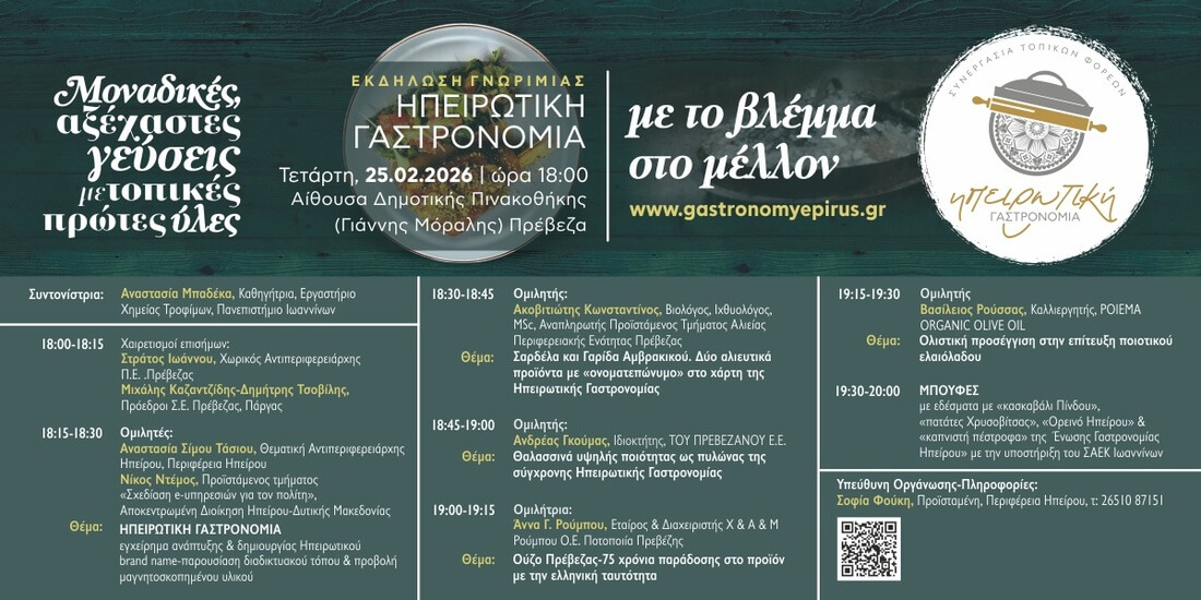 Eκδηλώσεις προβολής της Ηπειρώτικης Γαστρονομίας σε Άρτα και Πρέβεζα