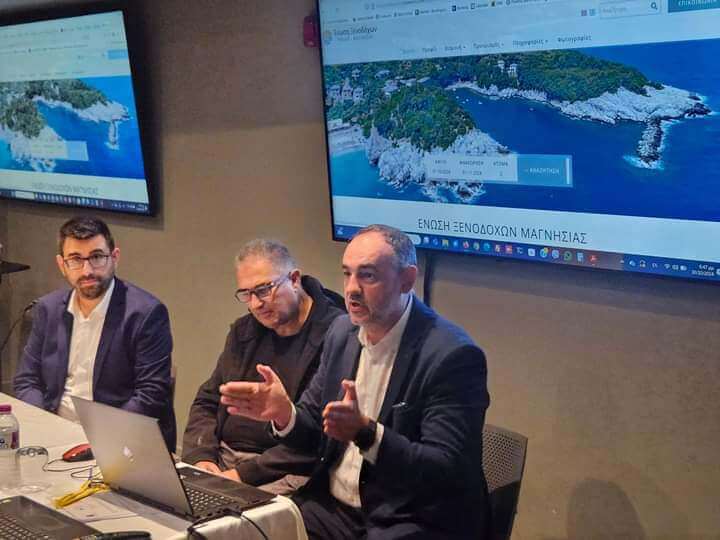Στο πλαίσιο της εκδήλωσης, έγινε παρουσίαση από τους Χάρη Μπρουσαλιάν και Αλέξανδρο Δαμίγο (φωτογραφία) της Marinet Hotel Digital Marketing Solutions του νέου τουριστικού portal της Ένωσης Ξενοδόχων Νομού Μαγνησίας, ενώ ο Θανάσης Μπαρούτας από το Hotel Promotion Group έκανε παρουσίαση με θέμα «τεχνικές πωλήσεων».