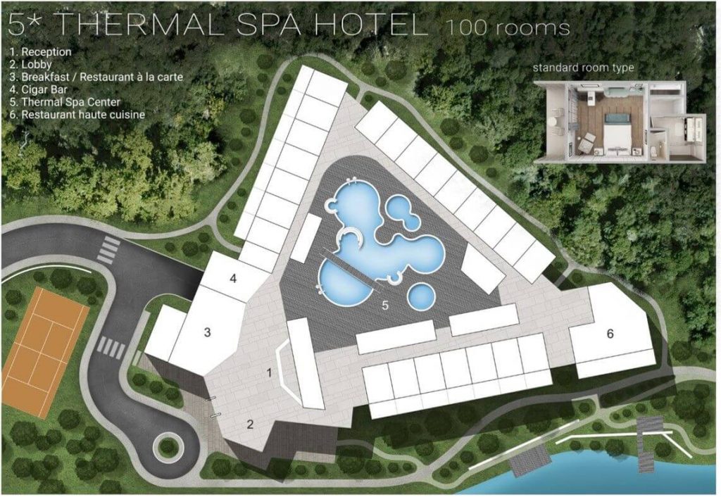 Το μεγάλο πλεονέκτημα της επένδυσης είναι οι θερμές ιαματικές πηγές που υπάρχουν στην περιοχή, οι οποίες θα αξιοποιηθούν με σκοπό το συγκρότημα να προσελκύει τουρίστες ιαματικού τουρισμού ολόκληρο το χρόνο.