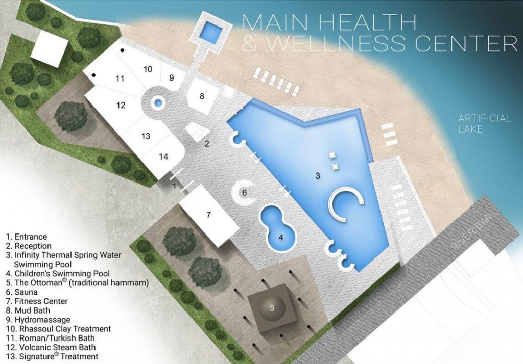 - Main Health & Wellness Center με δύο πισίνες, η μία για παιδιά, με ιαματικό νερό κ.ά.