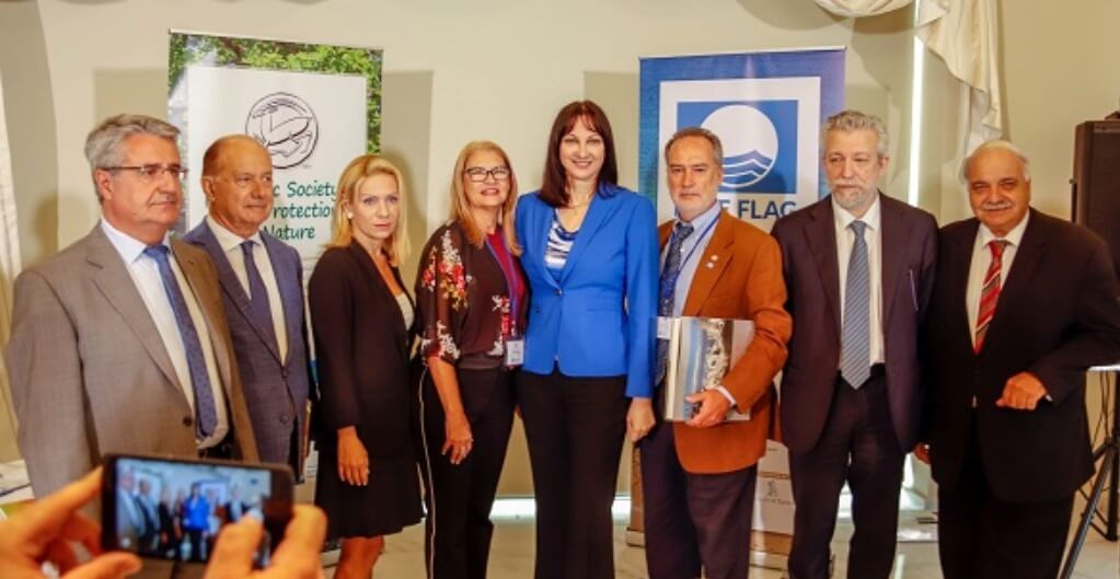 «Η Ελλάδα συμμετέχει ενεργά και στηρίζει το πρόγραμμα «Γαλάζια Σημαία». Διαθέτει 519 βραβευμένες ακτές και 15 μαρίνες και είναι 2η παγκοσμίως τα τελευταία χρόνια σε Γαλάζιες Σημαίες», τόνισε η κα Κουντουρά. «Επιδιώκουμε να διατηρήσουμε την υψηλή μας κατάταξη» συνέχισε η Υπουργός, «εξασφαλίζοντας ότι πληρούμε τα κριτήρια από έτος σε έτος, να επαναφέρουμε τις Γαλάζιες Σημαίες όπου χρειάζεται, και δεσμευόμαστε για το 2019 να εργαστούμε σκληρά για να απονεμηθεί σε περισσότερες ελληνικές παραλίες αυτή η διάσημη διεθνώς περιβαλλοντική διάκριση. Αυτός είναι ο λόγος που πιστεύω ότι είναι πολύ συμβολικό να στείλετε αυτό το ξεκάθαρο μήνυμα, εδώ από το νησί της Ζακύνθου».