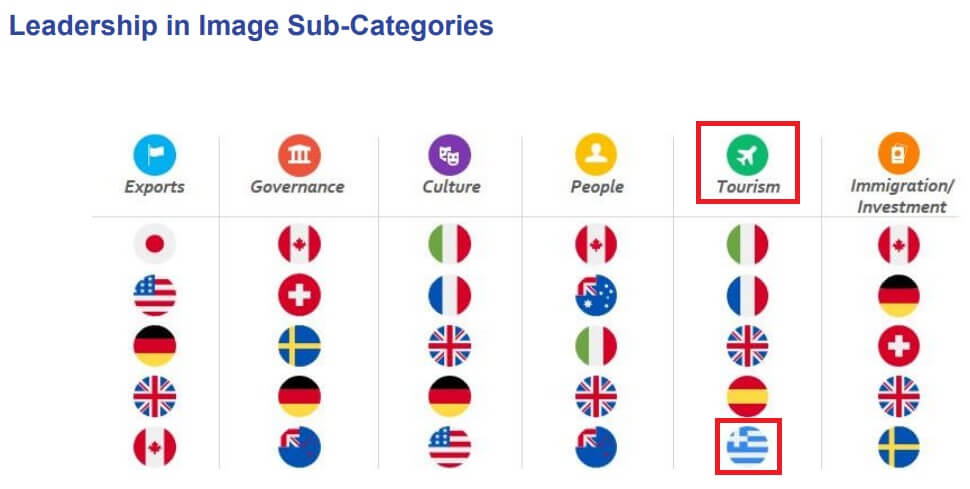 Έτσι, σύμφωνα με το National Brand Index 2020 της Ipsos, η Ελλάδα βρίσκεται στην 5η θέση παγκοσμίως στην υποκατηγορία του τουρισμού.