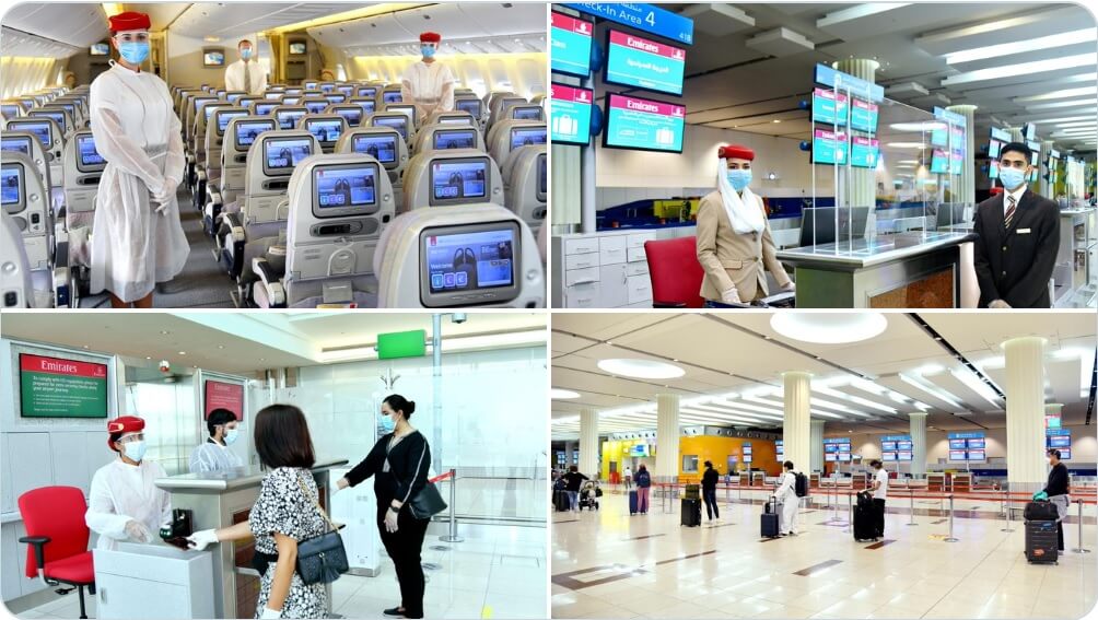Η Emirates έχει λάβει νέα μέτρα ασφαλείας (κενές θέσεις στα αεροπλάνα, μάσκες, γάντια και προστατευτικές στολές μιας χρήσης για τα πληρώματα των αεροσκαφών και το προσωπικό της στο αεροδρόμιο του Ντουμπάι, υποχρεωτικά γάντια και μάσκες για τους επιβάτες, θερμικές κάμερες ελέγχου της θερμοκρασίας επιβατών και εργαζομένων στο αεροδρόμιο του Ντουμπάι, τα περιοδικά στα αεροπλάνα δεν θα είναι προσωρινά διαθέσιμα κ.ά.), για την αντιμετώπιση της πανδημίας του κορονοϊού.