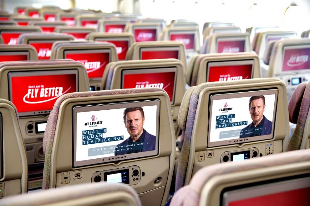 Με την παρουσίαση του ειδικού μηνύματος της καμπάνιας στο σύστημα ψυχαγωγίας ice, σε όλες τις πτήσεις από τον Οκτώβριο, η Emirates ελπίζει να ρίξει φως σε αυτό το παγκόσμιο πρόβλημα και να βοηθήσει περισσότερους ανθρώπους να κατανοήσουν τι είναι η εμπορία και διακίνηση ανθρώπων.