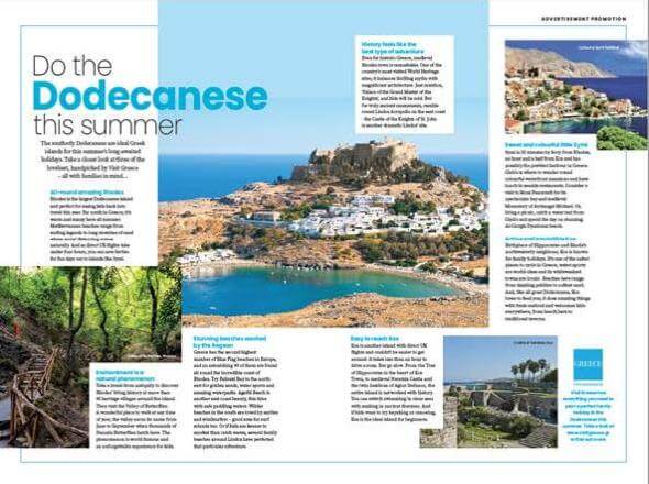 Family Traveller: Δισέλιδο ταξιδιωτικό αφιέρωμα στο καλοκαιρινό τεύχος του σημαντικότερου περιοδικού οικογενειακών διακοπών στο Ην. Βασίλειο στα Δωδεκάνησα και ειδικότερα σε Ρόδο, Κω και Σύμη.