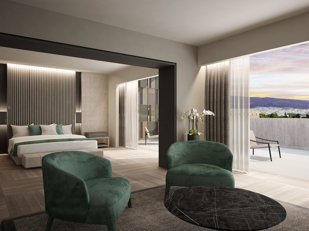 Εντυπωσιάζει η 160 τ.μ. πλήρως ανακαινισμένη προεδρική σουίτα του ξενοδοχείου NJV Athens Plaza, που βρίσκεται στην πλατεία Συντάγματος.