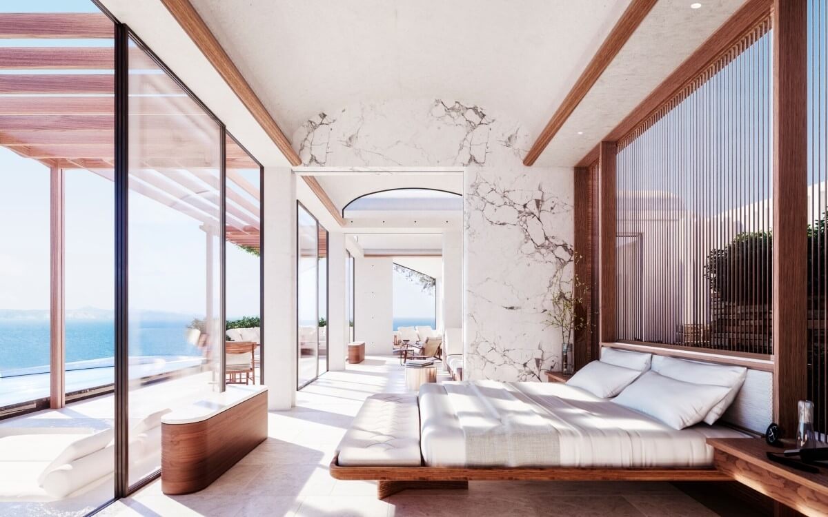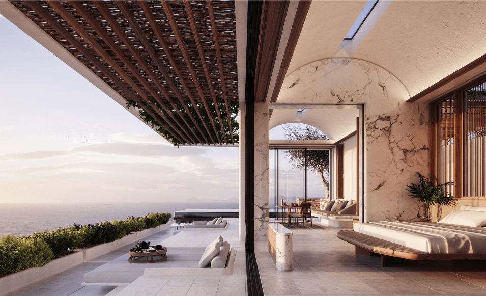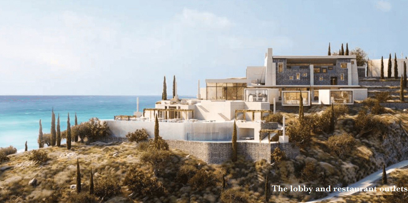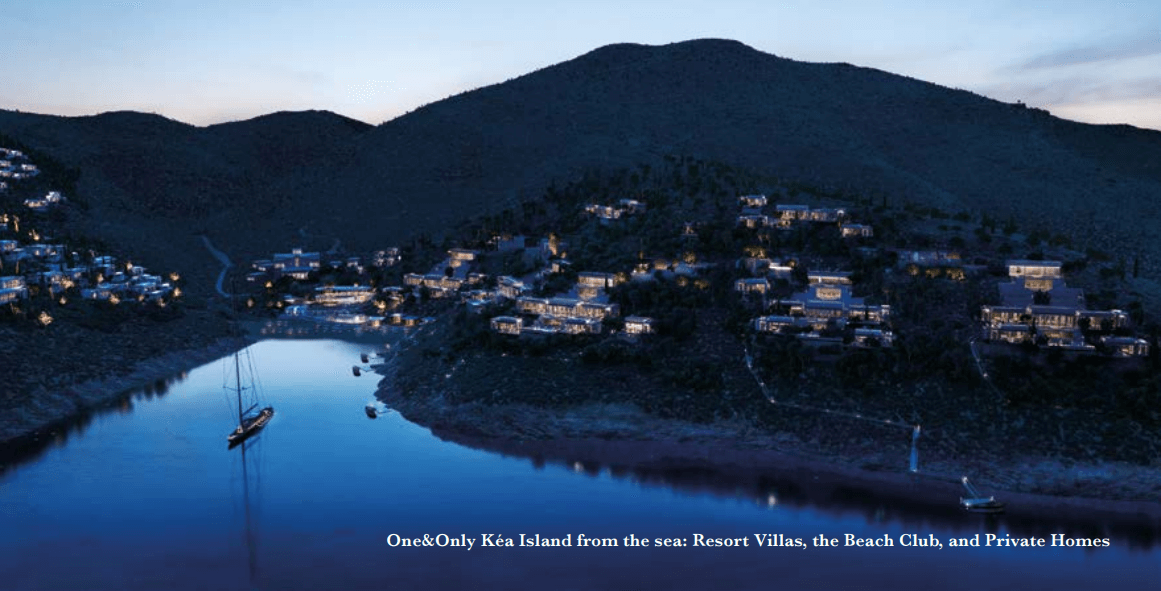 To One & Only Kea Island Resort θα περιλαμβάνει 75 resort villas, τρία εστιατόρια, δύο bars, spa, beach club και περιορισμένο αριθμό πολυτελών παραθεριστικών κατοικιών (βίλες) προς πώληση.