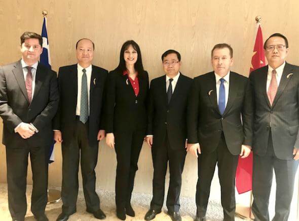 Η Υπουργός Τουρισμού Έλενα Κουντουρά με το Δήμαρχο του Πουντόνγκ – Σαγκάης, Ji Zhaoliang, τον Υφυπουργό Αγροτικής Ανάπτυξης, Βασίλη Κόκκαλη, το Γενικό Πρόξενο της Ελλάδας στη Σαγκάη, Βασίλη Ξηρό, τον Πρόεδρο του Οργανισμού Διαχείρισης της Ζώνης Ελεύθερου Εμπορίου Σαγκάης, Weng Zhuliang και το Διευθυντή του Οργανισμού Διαχείρισης της Ζώνης Ελεύθερου Εμπορίου Σαγκάης, Chen Bin.