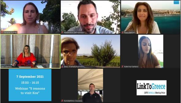 Ειδικότερα, στις 7 Σεπτεμβρίου πραγματοποιήθηκε σεμινάριο (webinar) για την Κω με την υποστήριξη του τοπικού Δήμου, με τον προορισμό να παρουσιάζουν η Αντιδήμαρχος Τουρισμού, Σ. Βλάχου, οι εκπρόσωποι του Δήμου, Κ. Κανταρτζή και Κ. Σουράσης, η Πρόεδρος της Ένωσης Οινοπαραγωγών Νήσων Αιγαίου, Μ. Τριανταφυλλοπούλου, ο Αλ. Ζαφειρόπουλος από την Ένωση Ξενοδόχων του νησιού και η πρωταθλήτρια ποδηλασίας, Τ. Τουμπάζη.