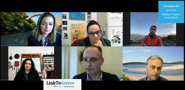 Τέλος, στις 4 Νοεμβρίου υλοποιήθηκε το ειδικό webinar για την Ήπειρο με την υποστήριξη της Περιφέρειας Ηπείρου, όπου έλαβαν μέρος ο Κ. Ακρίβος και η Β. Ηγουμενίδου εκ μέρους της Περιφέρειας, ο Πρόεδρος της Ένωσης Ξενοδόχων Ιωαννίνων, Στ. Σιούτης, ο εκπρόσωπος εταιρείας δραστηριοτήτων Α. Παπαευθυμίου και η Κ. Χούμη από το Λαογραφικό Μουσείο Τζουμέρκων.