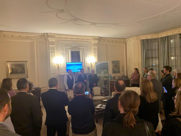 Την εκδήλωση χαιρέτησε ο Πρέσβης της Ελλάδας στο Λονδίνο Ιωάννης Ραπτάκης, που παρείχε για πρώτη φορά, στην τελευταία πενταετία, τη δυνατότητα στον ΕΟΤ να πραγματοποιήσει εκδήλωση υψηλού κύρους στην πρεσβευτική κατοικία.