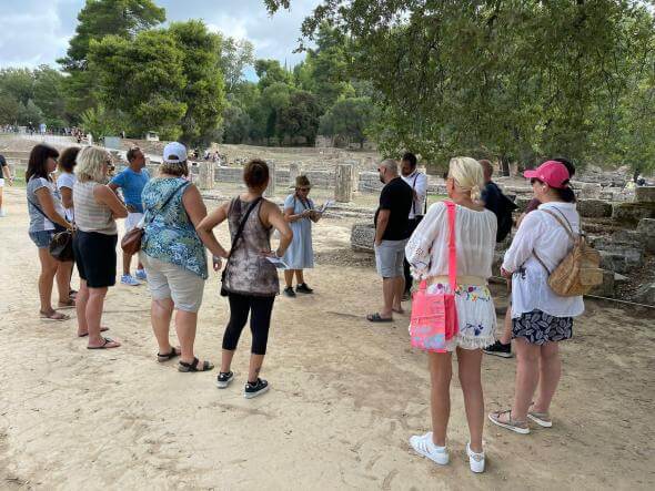 2η: Στιγμιότυπο από την ξενάγηση των Γερμανών τουριστικών πρακτόρων στον αρχαιολογικό χώρο της Ολυμπίας.