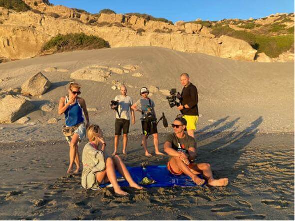 3η: Στιγμιότυπο από τα γυρίσματα του συνεργείου της Wirtualna Polska TV, σε παραλία της Κρήτης.