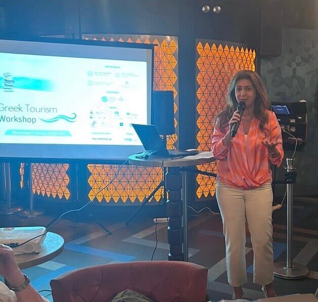 Η Προϊσταμένη της Υπηρεσίας Ε.Ο.Τ. Ην. Βασιλείου & Ιρλανδίας, Ελένη Σκαρβέλη, απηύθυνε χαιρετισμό στους 80 παρευρισκόμενους ταξιδιωτικούς πράκτορες και στελέχη της τουριστικής αγοράς του Μάντσεστερ, σημειώνοντας ότι μπορούν να απευθύνονται για πληροφορίες στο γραφείο του Ε.Ο.Τ. στο Λονδίνο και τονίζοντας τη στρατηγική σημασία ένταξης εναλλακτικών δράσεων στα ταξιδιωτικά πακέτα που προτείνουν στο πελατολόγιό τους, καθώς και τις βιώσιμες πρωτοβουλίες ελληνικών προορισμών που προβάλλονται μέσω της πλατφόρμας Sustainable Greece.