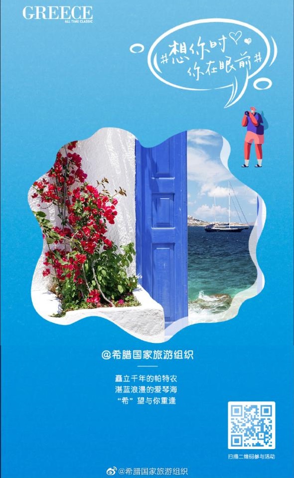 Σημαντική προβολή στην κινεζική αγορά είχε η Ελλάδα από τη συμμετοχή της Υπηρεσίας ΕΟΤ Κίνας στη διαδικτυακή καμπάνια #Thinkingofyou, που οργάνωσε τον Ιούνιο και τον Ιούλιο η κινεζική εταιρεία Dragon Trail Interactive.