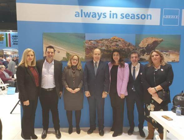 Από αριστερά: Η αναπληρώτρια προϊσταμένη της Υπηρεσίας ΕΟΤ Κάτω Χωρών, Αγγελική Τζίφα, ο εντεταλμένος σύμβουλος της Περιφέρειας Αττικής, Θοδωρής Κουτσογιαννόπουλος, το μέλος του Δ.Σ. του ΕΟΤ, Αγγελική Μητσολίδου, ο πρέσβης της Ελλάδας στο Βέλγιο, Διονύσης Καλαβρέζος, η προϊσταμένη της Υπηρεσίας ΕΟΤ Κάτω Χωρών, Ελένη Σκαρβέλη, ο εντεταλμένος σύμβουλος τουρισμού της Περιφέρειας Κρήτης, Κυριάκος Κώτσογλου και η προϊσταμένη της Διεύθυνσης Τουρισμού Περιφέρειας Αττικής, Αθηνά Κολυβά.