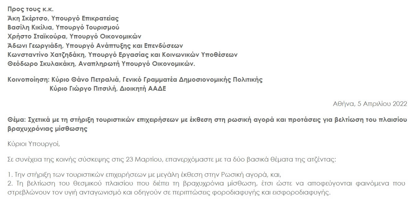 Ο Πρόεδρος του Συνδέσμου Ελληνικών Τουριστικών Επιχειρήσεων (ΣΕΤΕ), Γιάννης Ρέτσος, έστειλε επιστολή στους αρμόδιους Υπουργούς με προτάσεις για βελτίωση του θεσμικού πλαισίου λειτουργίας της αγοράς των βραχυχρόνιων μισθώσεων (μέγιστος αριθμός ακινήτων ανά Δήμο, επιβολή δημοτικού φόρου κ.ά.).