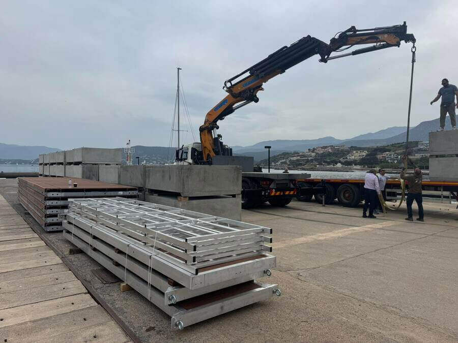 Οι πρώτες πλωτές προβλήτες έφτασαν από την Ιταλία και άμεσα ξεκίνησαν οι εργασίες συναρμολόγησης και τοποθέτησής τους.