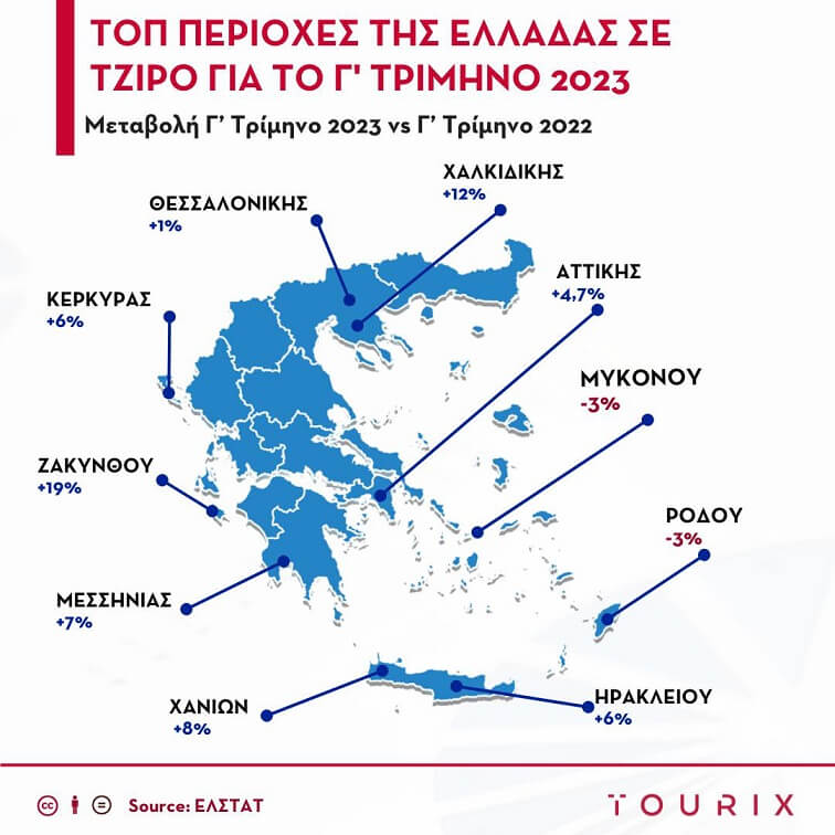 Μεγαλύτερη ποσοστιαία αύξηση του τζίρου για την περίοδο Ιούλιος – Σεπτέμβριος του 2023 σε σχέση με την αντίστοιχη περίοδο του 2022: