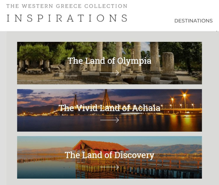 Ιδιαίτερη αναφορά γίνεται στην Αρχαία Ολυμπία ως Κοιτίδα του Ολυμπισμού και του Πολιτισμού, το Κάστρο Χλεμούτσι, το Ενετικό Κάστρο Ναυπάκτου, το Ενετικό Κάστρο Αντιρρίου, γνωστό και ως «καστέλι της Ρούμελης». Πλήρης καταγραφή γίνεται σε αξιοθέατα, μουσεία, θρησκευτικά προσκυνήματα και αρχαιολογικούς χώρους.