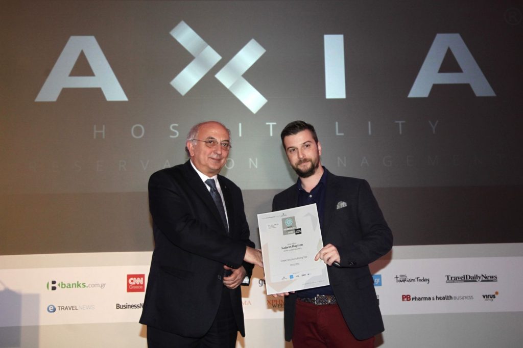 Την πιο δυναμική εκκίνηση για την εταιρεία, ωστόσο, επιφύλαξε η βραδιά της περασμένης Παρασκευής, αφού στην ειδική κατηγορία των τιμητικών διακρίσεων με την οποία ξεκίνησε η τελετή απονομής των βραβείων, ο ιδρυτής και CEO της Axia Hospitality, κος Γιάννης Κυρίτσης βραβεύτηκε ως Rising Star επιχειρηματίας της ελληνικής τουριστικής βιομηχανίας (φωτογραφία).