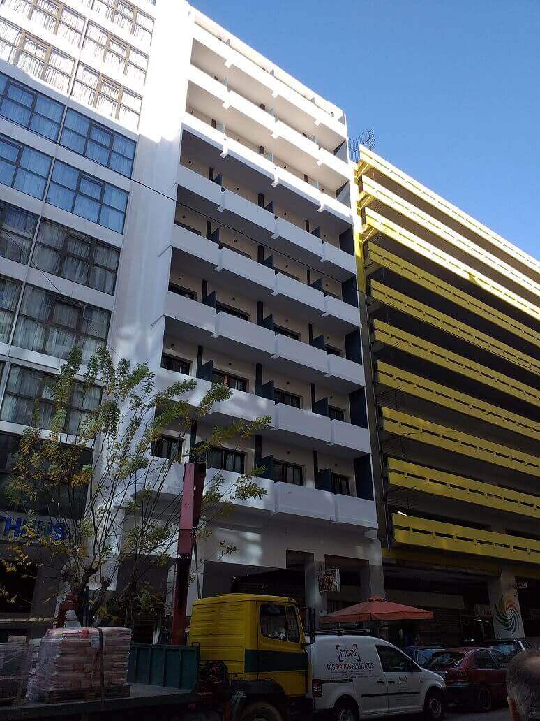 Πρόκειται για το Evita Asty Hotel, που δημιουργήθηκε σε πολυώροφο κλειστό τα τελευταία χρόνια κτήριο, στην οδό Χαλκοκονδύλη 44, πολύ κοντά στην Ομόνοια.
