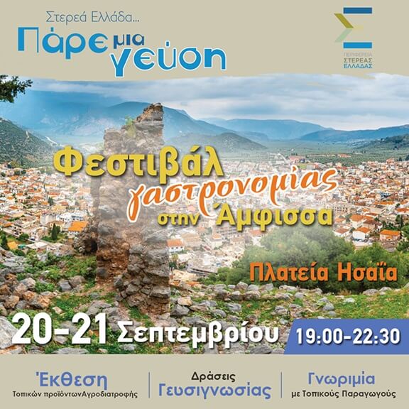 Με επιτυχία ολοκληρώθηκε το Φεστιβάλ Γαστρονομίας «Στερεά Ελλάδα Πάρε Μια Γεύση» που πραγματοποιήθηκε από την Περιφέρεια Στερεάς Ελλάδας με την υποστήριξη του Δήμου Δελφών και του Επιμελητηρίου Φωκίδος το Σάββατο 20 και την Κυριακή 21 Σεπτεμβρίου στην Πλατεία Ησαΐα, στην Άμφισσα.