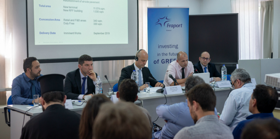 Στο πλαίσιο σειράς εκδηλώσεων που πραγματοποιεί η Fraport Greece στις 14 περιοχές όπου βρίσκονται τα αεροδρόμια που διαχειρίζεται, τα στελέχη της εταιρείας (φωτογραφία) παρουσίασαν σε περισσότερους από 70 εκπροσώπους της αυτοδιοίκησης και των τοπικών φορέων της Κεφαλλονιάς, σχέδια ύψους 27 εκατ. ευρώ για την ανάπτυξη και αναβάθμιση του αεροδρομίου «Άννα Πολλάτου» του νησιού.
