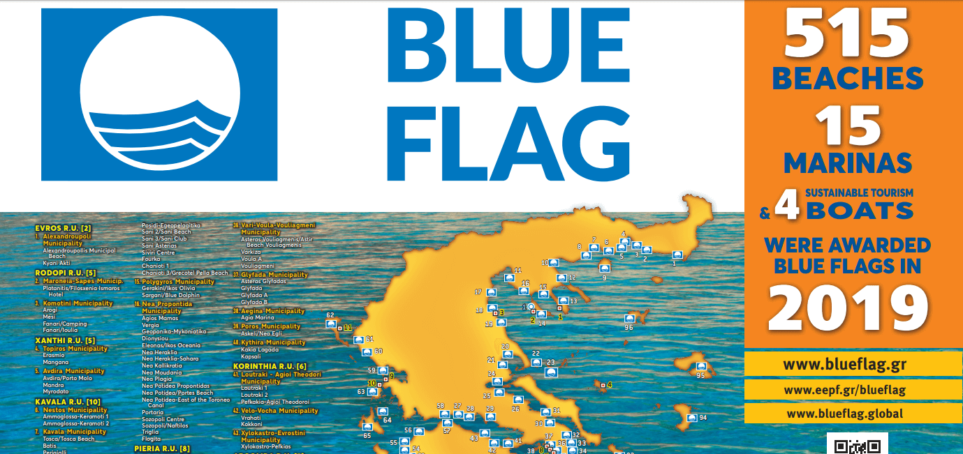 Δείτε ΕΔΩ τη λίστα με τις 515 ακτές, τις 15 μαρίνες και τέσσερα σκάφη αειφόρου τουρισμού που βραβεύονται για το 2019.