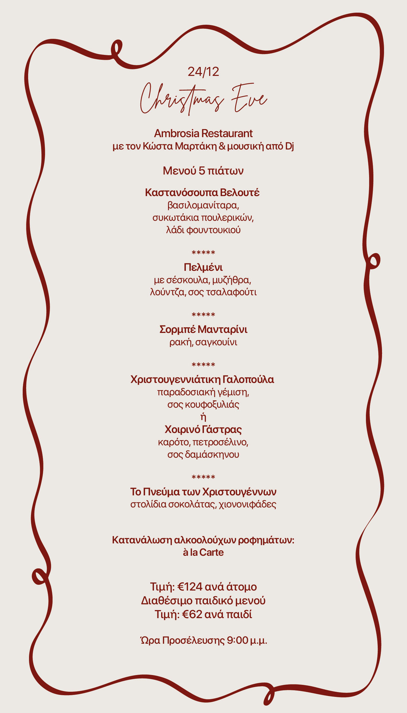 Αυτή την Παραμονή των Χριστουγέννων, το Ambrosia Restaurant του Hyatt Regency Thessaloniki σας υποδέχεται για μια αξέχαστη βραδιά.