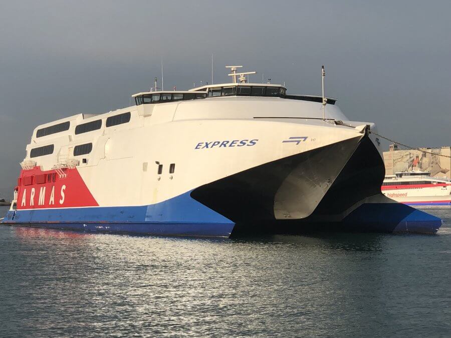 Το περασμένο Σάββατο κατέπλευσε στο λιμάνι του Πειραιά το Golden Express, που ναυπηγήθηκε το 1998, έχει μήκος 91 μέτρα, πλάτος 26 μέτρα, με τέσσερις κύριες μηχανές που δίνουν υπηρεσιακή ταχύτητα 35 κόμβων.