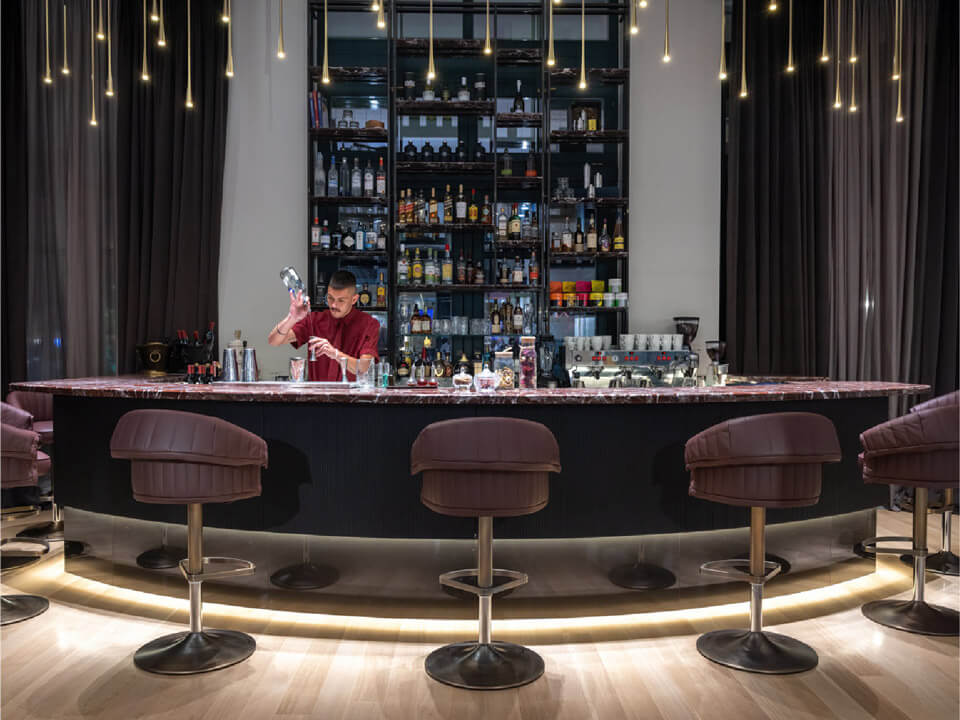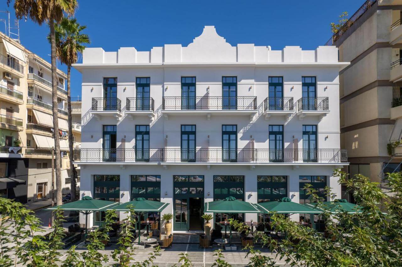 Το εντυπωσιακό ξενοδοχείο αποκαλύφθηκε στην πρόσοψή του, στη Ναυαρίνου & Μαιζώνος 1 (στον κοσμοπολίτικο παραλιακό δρόμο), καθώς έφυγαν οι σκαλωσιές και επιταχύνονται οι εργασίες ολοκλήρωσής του, ώστε να ανοίξει στο τέλος Ιουνίου με 10 δωμάτια, 13 σουίτες, bar, καφετέρια, εστιατόριο, spa κ.ά.