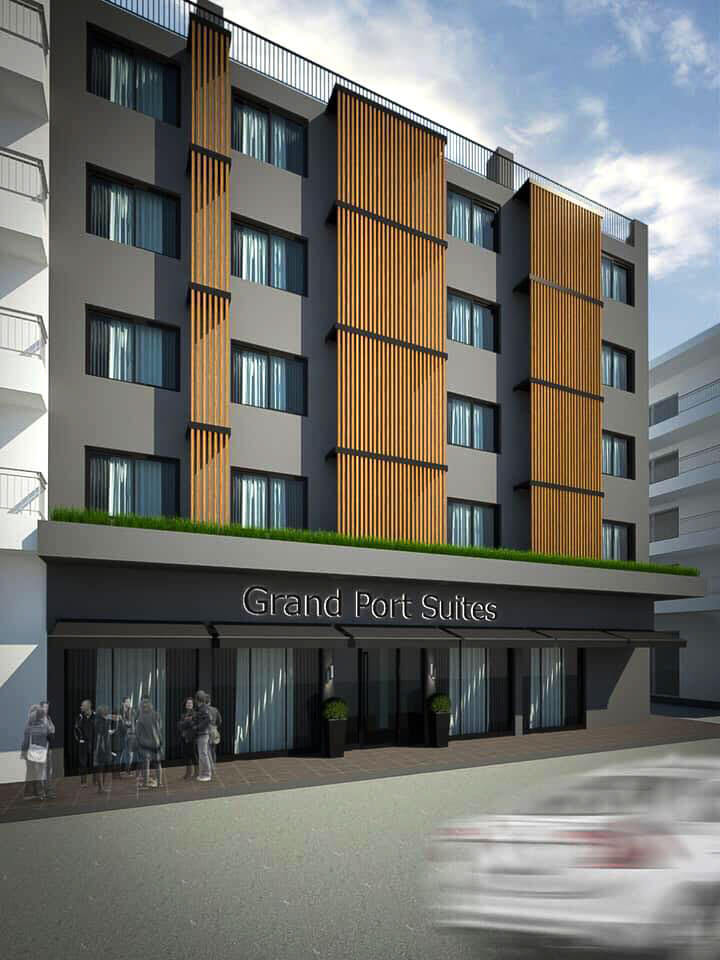 Πρόκειται για το Grand Port Suites που βρίσκεται στην περιοχή του Βαρδάρη (οδός Προμηθέως) και διαθέτει περίπου 20 δωμάτια και αίθουσα πρωινού.