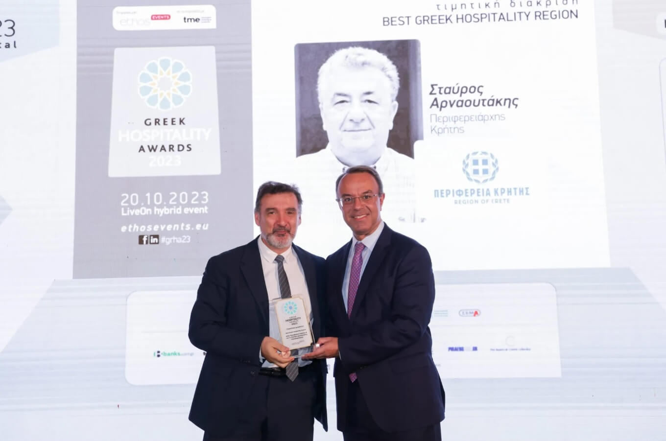 Η πιο φιλόξενη Περιφέρεια της Ελλάδας αναδείχθηκε η Περιφέρεια Κρήτης κατά την τελετή απονομής των «Greek Hospitality Awards 2023».