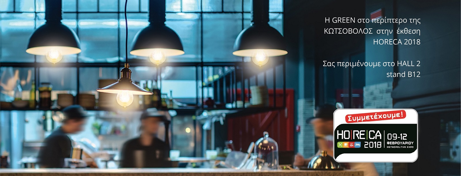 Η εταιρεία GREEN, που είναι πάροχος ηλεκτρικής ενέργειας, σε συνεργασία με την Κωτσόβολος, συμμετέχει στη μεγαλύτερη έκθεση για την τροφοδοσία και τον εξοπλισμό ξενοδοχείων και μονάδων μαζικής εστίασης «HORECA», στο εκθεσιακό κέντρο Metropolitan Expo (HALL 2, stand B12).