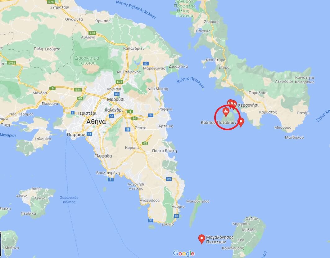 Μία νέα τουριστική επένδυση δρομολογεί η Grivalia Hospitality στη Μεγαλόνησο, το μεγαλύτερο νησί του συμπλέγματος των Πεταλιών (σε κόκκινο κύκλο στο χάρτη), το οποίο βρίσκεται στο νότιο Ευβοϊκό κόλπο και συνολικά περιλαμβάνει 10 ακατοίκητα νησιά.