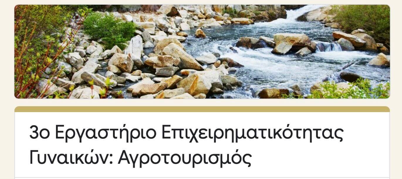 Στο Εργαστήριο θα αναπτυχθούν βασικά θέματα οργάνωσης και ανάπτυξης αγροτουριστικών επιχειρήσεων και θα παρουσιαστούν καλές πρακτικές επιχειρηματικότητας.