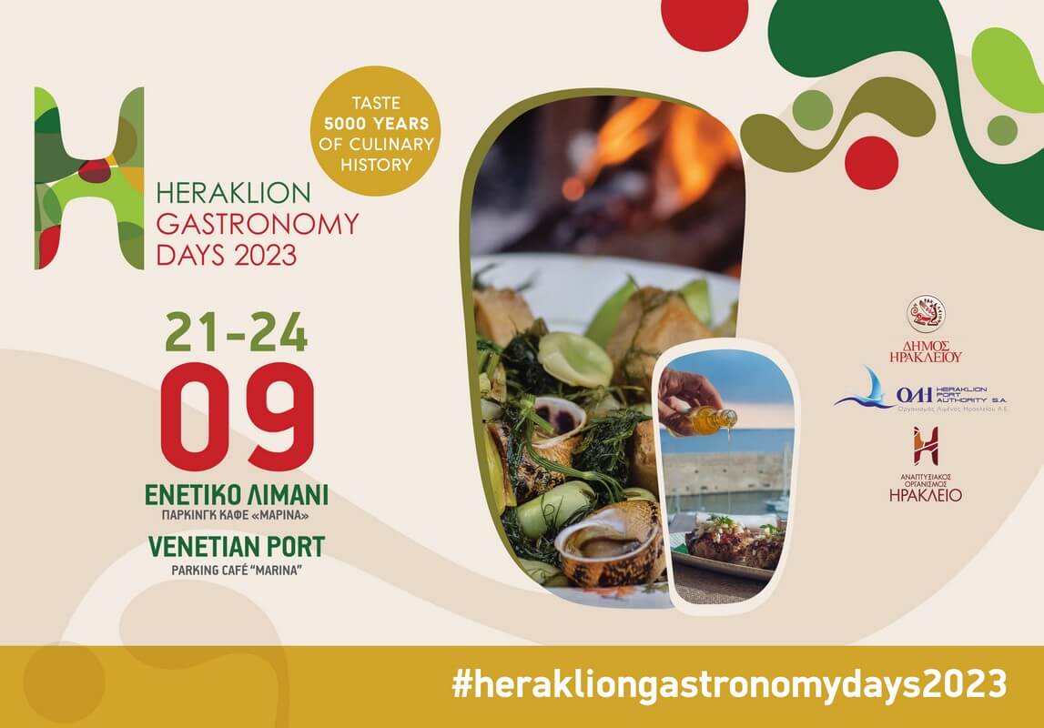 Με στόχο την ανάδειξη του Ηρακλείου ως ενός ξεχωριστού γαστρονομικού προορισμού και ταυτόχρονα την προβολή της μακραίωνης κρητικής μαγειρικής παράδοσης, πραγματοποιείται από σήμερα 21 έως τις 24 Σεπτεμβρίου στο Ενετικό Λιμάνι του Ηρακλείου το 5ο γαστρονομικό και πολιτιστικό φεστιβάλ «Ηράκλειο – Μέρες Γαστρονομίας / Heraklion Gastronomy Days 2023».