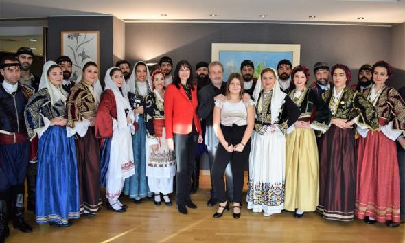Η Υπουργός καλωσόρισε τους νέους και νέες του Ομίλου που χόρεψαν κρητικούς χορούς και αντάλλαξαν ευχές και συμβολικά δώρα για το νέο έτος.