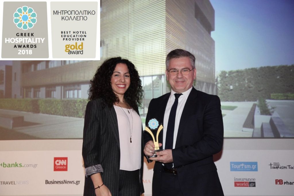 Για τρίτη συνεχόμενη χρονιά, η Σχολή Τουρισμού του Μητροπολιτικού Κολλεγίου βραβεύθηκε ως η καλύτερη Σχολή ξενοδοχειακής εκπαίδευσης στα Greek Hospitality Awards 2018. Τα βραβεία διοργάνωσε η εταιρεία Ethos Awards και το περιοδικό Χρήμα, υπό την αιγίδα του Υπουργείου Τουρισμού, του Ελληνικού Οργανισμού Τουρισμού, της ΔΕΘ Helexpo, της Γενικής Πανελλαδικής Ομοσπονδίας Επιχειρήσεων Τουρισμού και της Πανελλήνιας Ομοσπονδίας Ξενοδόχων.
