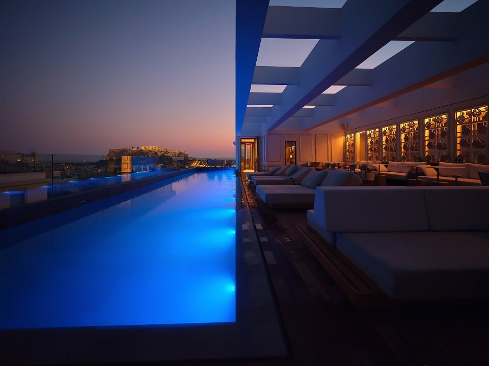Πιο συγκεκριμένα, το Kalua Athens λειτουργεί ως εστιατόριο στον 9ο όροφο του ξενοδοχείου, προσφέροντας μια ακαταμάχητη θέα της Ακρόπολης, ενώ ο 10ος όροφος λειτουργεί ως lounge club και pool restaurant με εκπληκτική θέα στην Ακρόπολη και το Λυκαβηττό.
