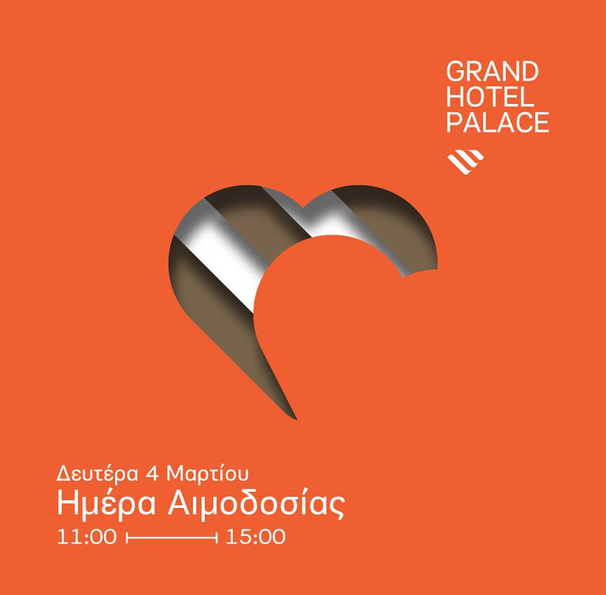 Έλα και εσύ στην Ημέρα Αιμοδοσίας του Grand Hotel Palace, να δώσεις λίγο αίμα και να σώσεις μια ζωή!